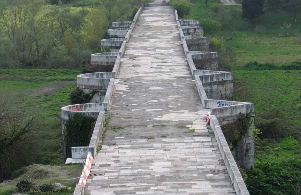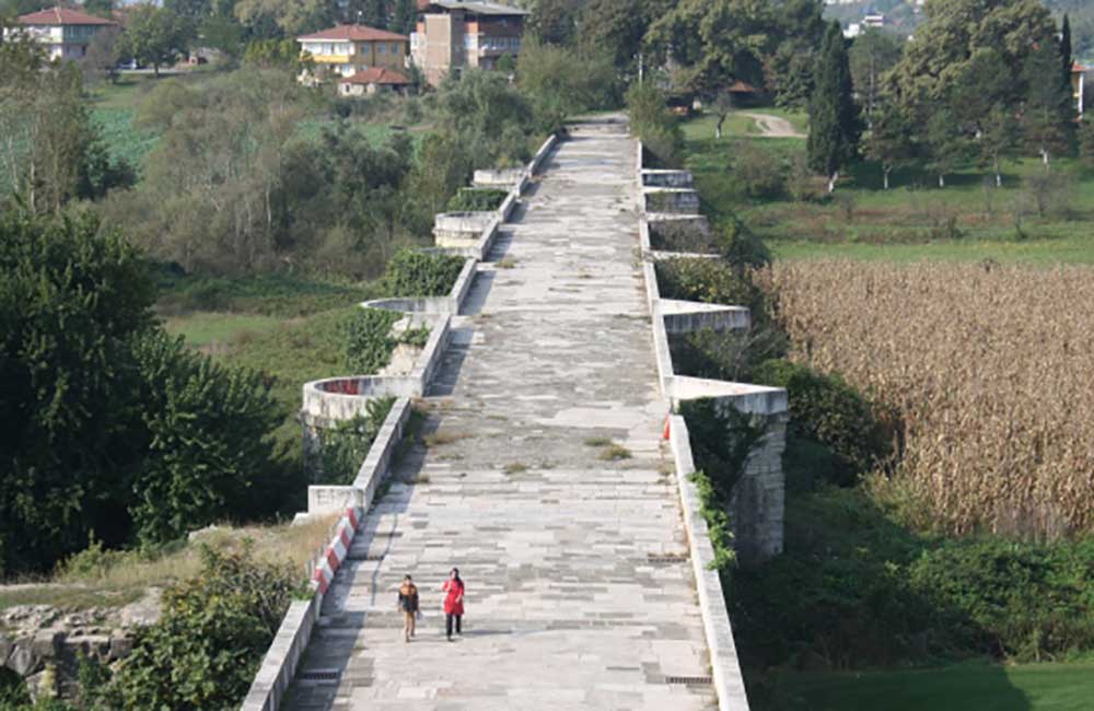 Bizans İmparatoru Justinianus (527-565) tarafından MS 558-560 yıllarında yaptırılan bu taş köprü, 365 metre uzunluğunda, 9,85 metre genişliğinde olup toplam 12 kemerlidir. Köprünün batı ucunda tak izi, doğu ucunda apsisli yapı ve köprü ile ilgili tonozlu yapı kalıntıları bulunmaktadır.
